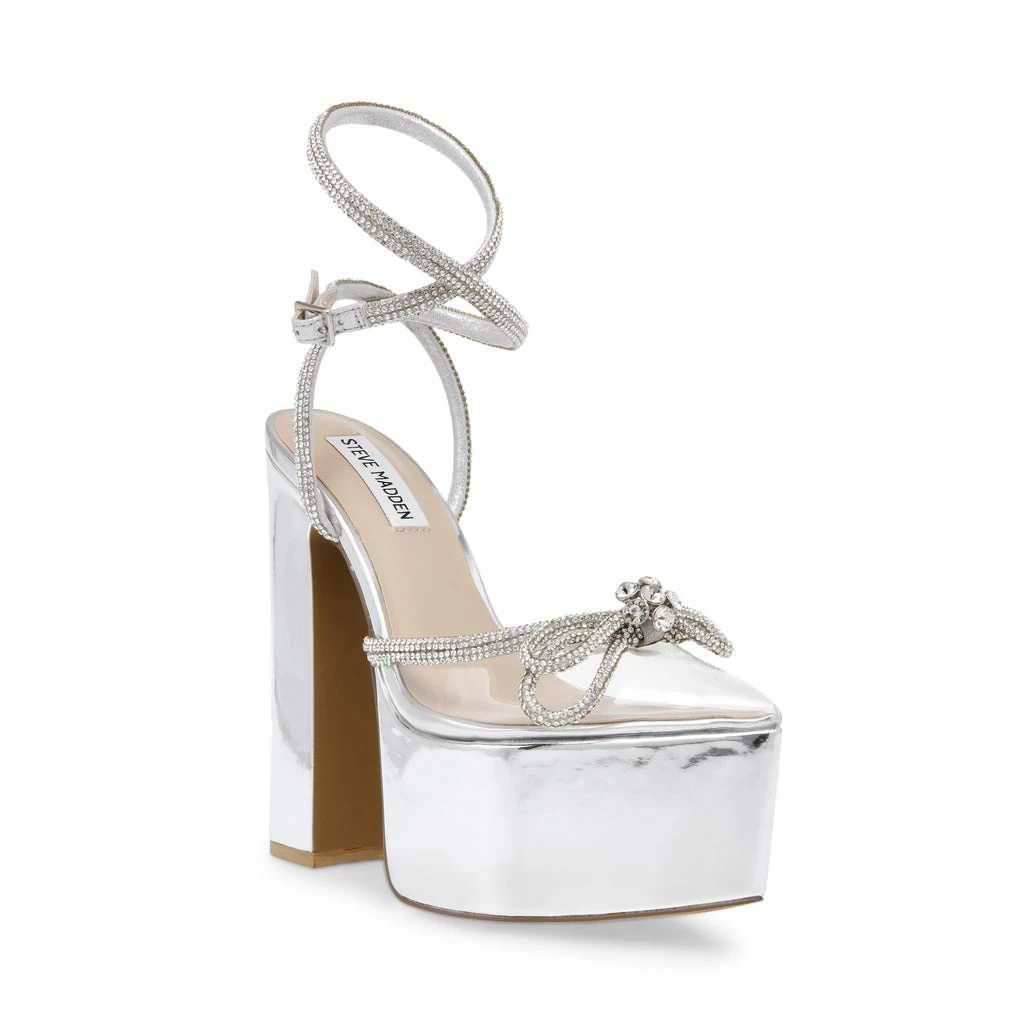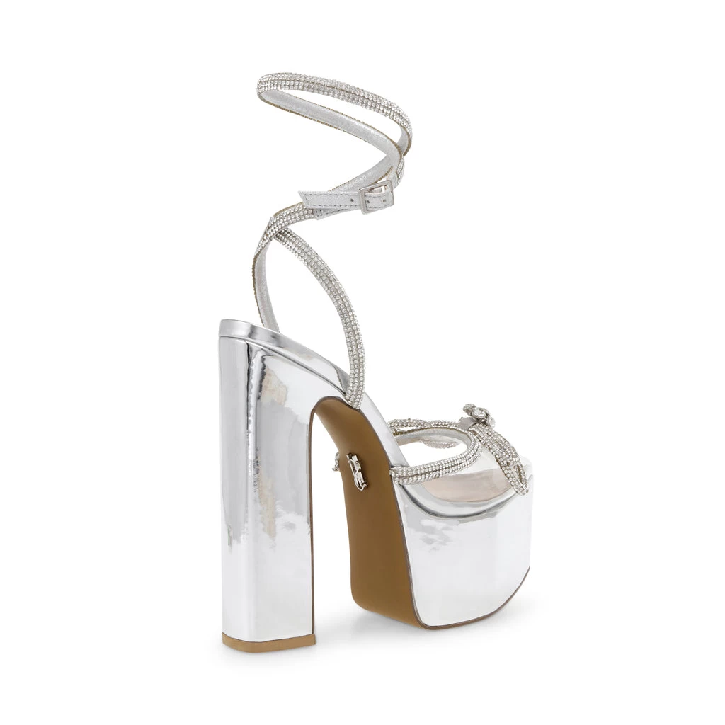 Demand attention when you walk into any room in BELLISIMA. This platform heel with rhinestone details make these sandals perfect for a night out, making sure you will make heads turn! Â